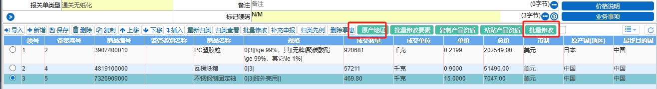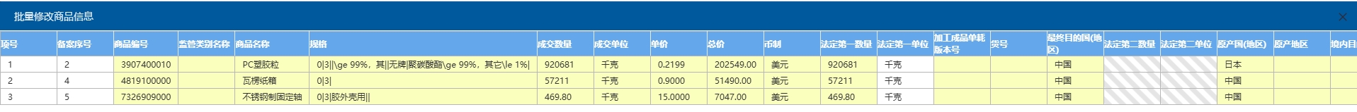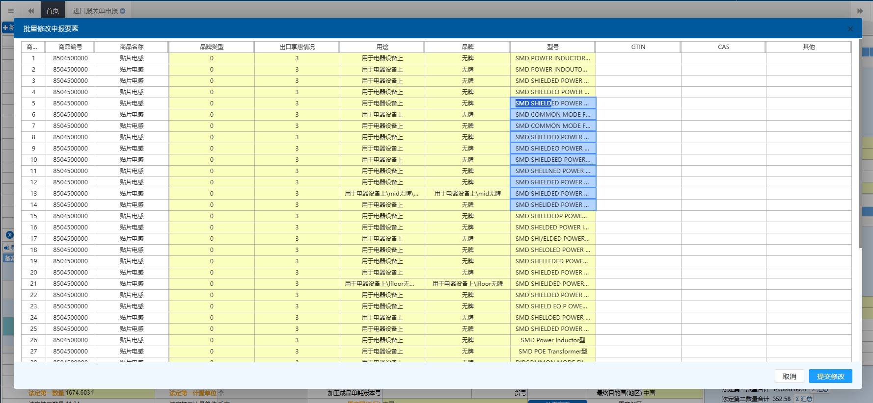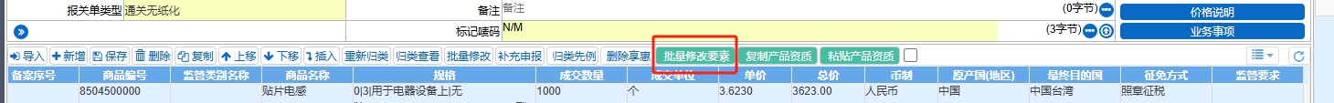 避免反复单独修改申报要素,批量操作多行复制粘贴更高效