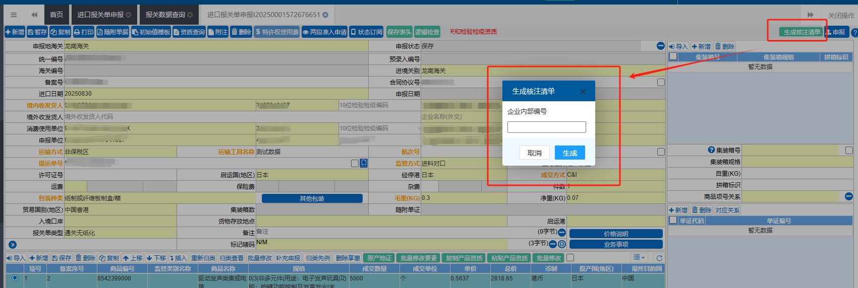 一键自动智能生成核注清单,减少人工操作,避免错误。