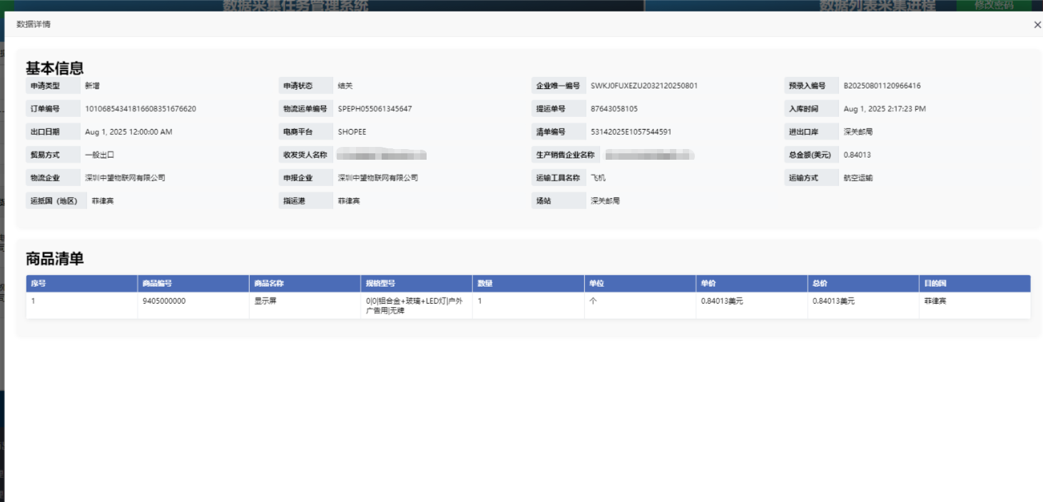 可以点击清单列表信息中的“查看详信”,查看更加详细的清单数据。